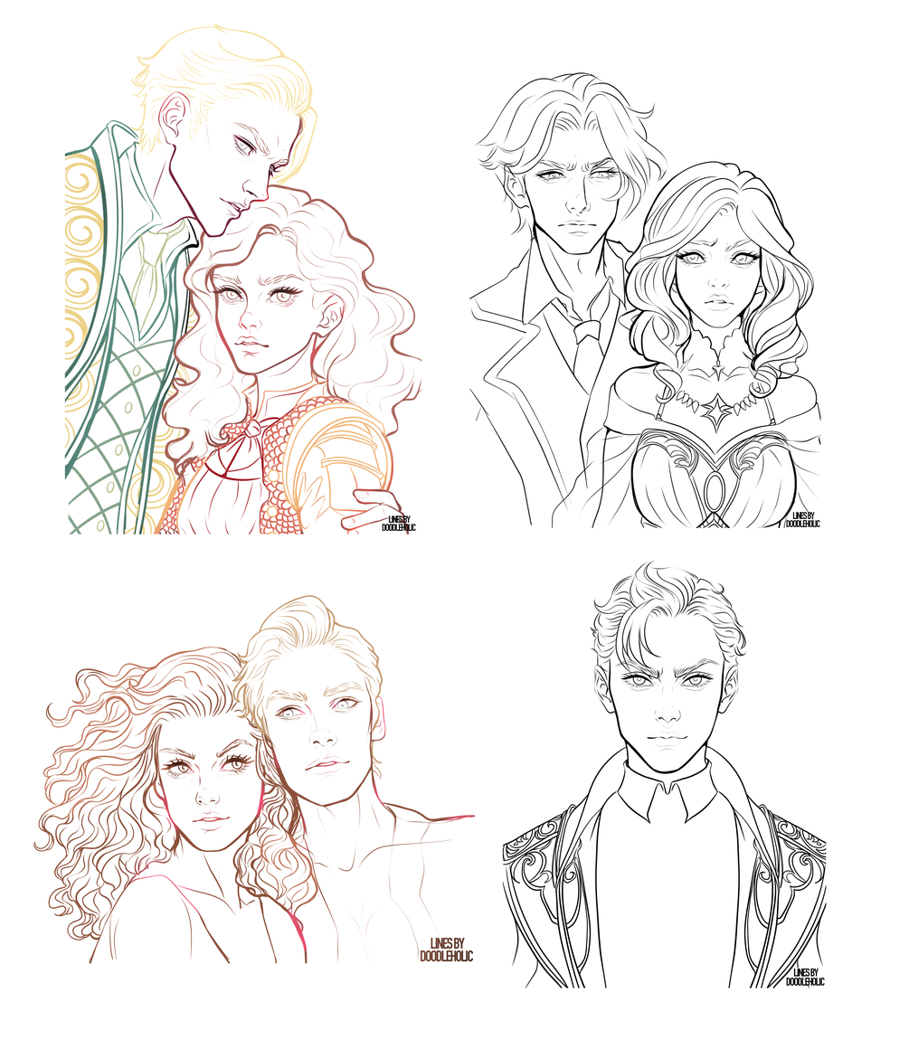 Four of my Dramione line arts in high resolution .png format for you to color digitally or traditionally.